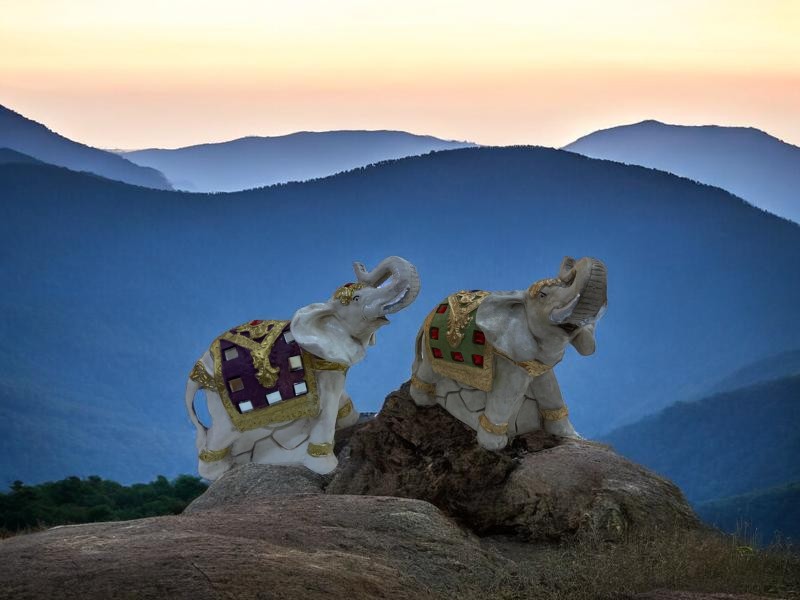Templos en India y Tailandia: Esculturas de elefantes blancos ricamente decoradas también son comunes en templos hindúes y budistas de estos países, representando deidades o como guardianes de las entradas.