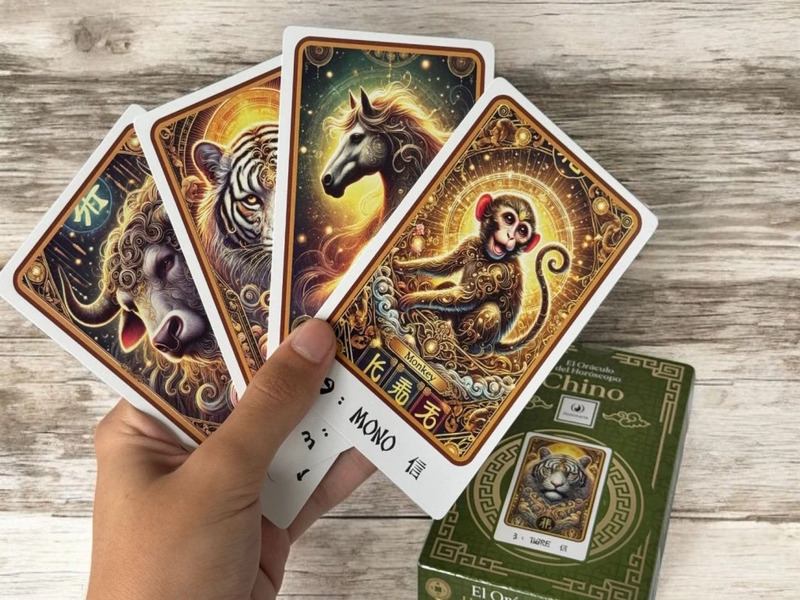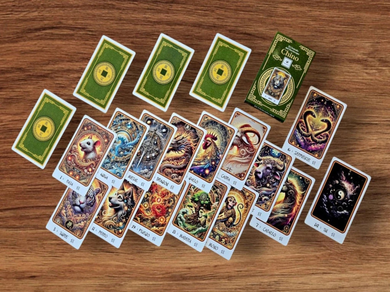Contenido: El mazo consta de 19 cartas (calidad premium, según los distribuidores) y un comodín. Cada carta representa la energía y las enseñanzas de los 12 animales sagrados del horóscopo chino (Rata, Buey, Tigre, Conejo, Dragón, Serpiente, Caballo, Cabra, Mono, Gallo, Perro y Cerdo).