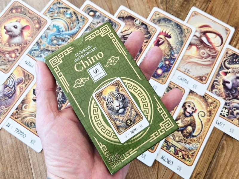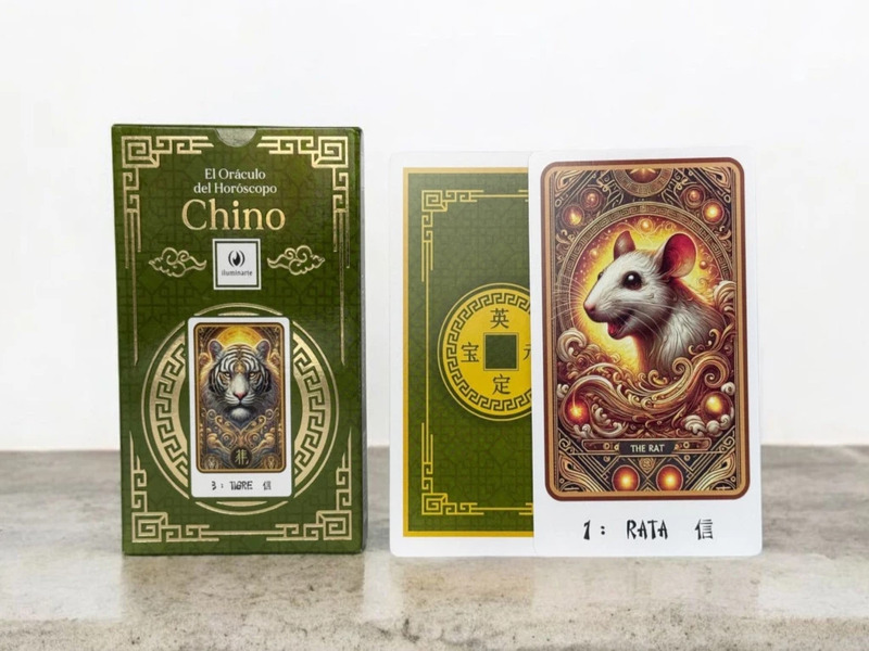 El Oráculo del Horóscopo Chino de Iluminarte es una herramienta de autoconocimiento y guía que usa un mazo de cartas con los 12 animales del zodiaco chino, los elementos y el Yin/Yang para ofrecer mensajes sobre tu destino, con ediciones especiales que incluyen una Moneda de la Fortuna, proporcionando sabiduría ancestral para tu iluminación personal