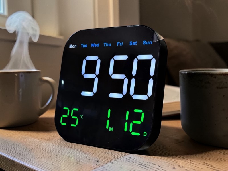 Reloj de pared LED de 18.5cm con diseño moderno y alimentación USB. Ideal para decorar cualquier espacio con estilo y funcionalidad.