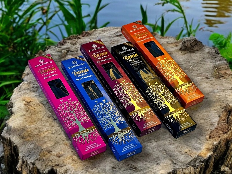 Los sahumerios en rama de 8 unidades son un formato popular de incienso artesanal “sin palo”, conocidos por su alta concentración de fragancia y larga duración. Marcas como Aromanza e Iluminarte lideran este segmento con variedades diseñadas para la limpieza energética y la armonización de ambientes.