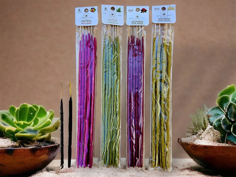 Sahumerios largos triple empaste con aroma a jardín, ideal para purificar y aromatizar tu hogar. Pack de 6 varillas. ¡Disfruta de una experiencia sensorial única!