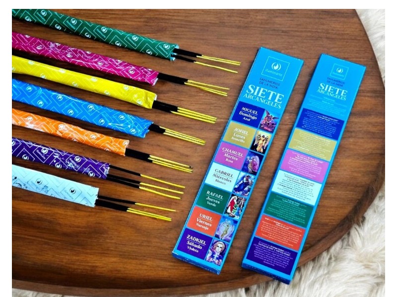 Siete Arcángeles (7 x 3) iluminate x 12c es un sahumerio de la India que combina la esencia de los siete arcángeles para purificar y armonizar tu espacio con su fragancia celestial.