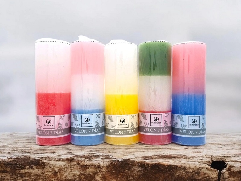 El “Velón 7 Días Iluminarte Combinado Santos” es una vela esotérica de la marca Iluminarte, diseñada para arder una semana completa, que combina diferentes colores o intenciones para protección, purificación, prosperidad y conexión espiritual, común en santería y rituales, buscando energía positiva y calma para el hogar y la introspección,