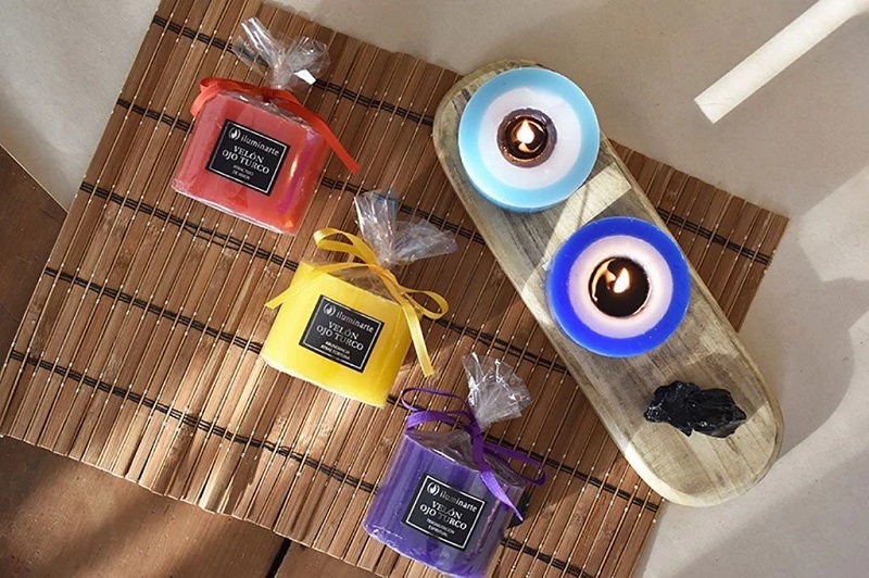Colores: El velón se ofrece en cinco colores, cada uno con su propia intención. El ojo turco tradicionalmente es azul, asociado con la protección.